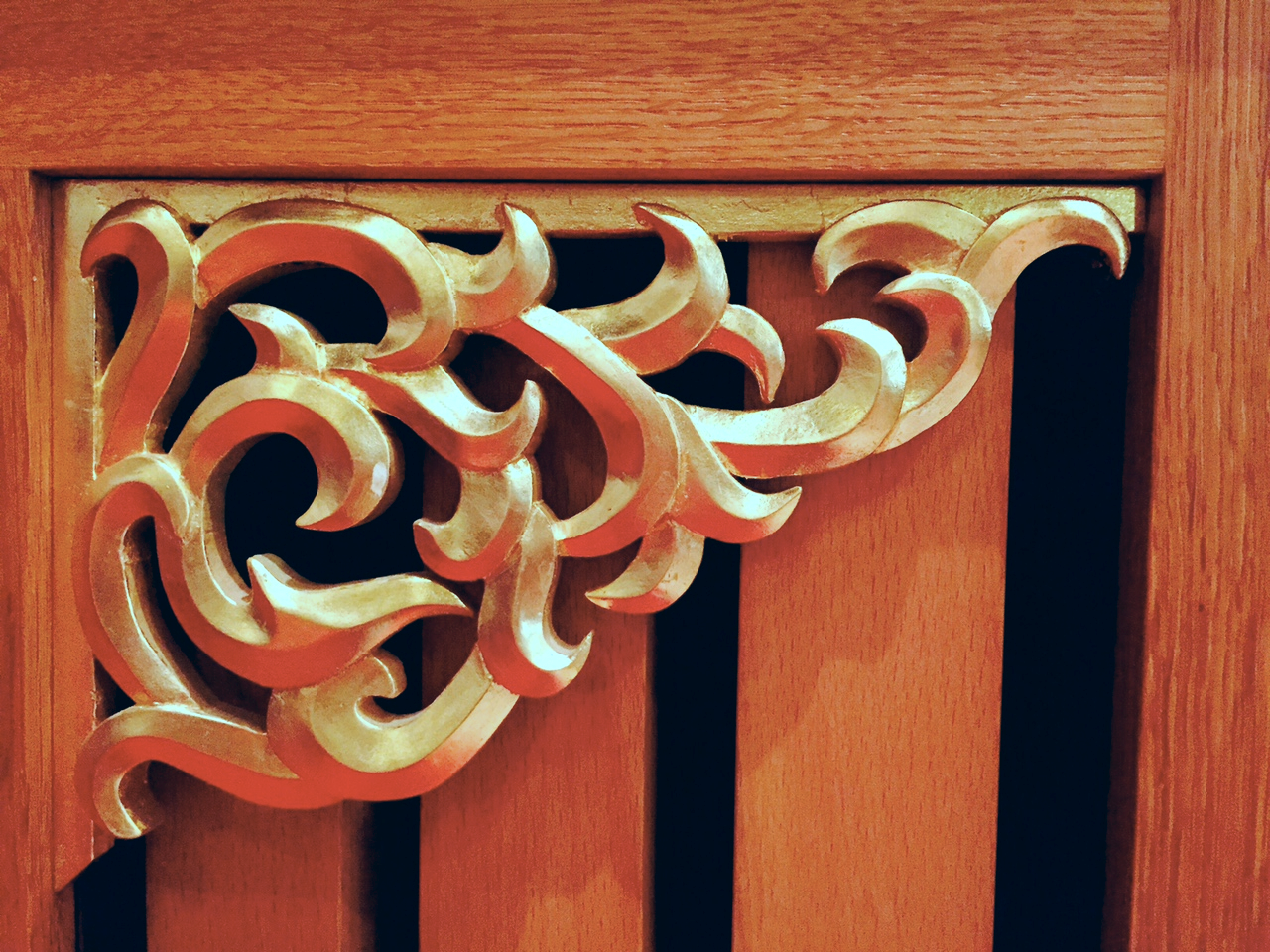 The casework is quarter-sawn white oak with gilded, hand carved pipe shades. The keyboard has bone covering on the naturals and grenadilla sharps. The blower and reservoir are located in the bench and connected to the instrument with a flexible hose. The pipes are provided with tuning slides, so that the instrument can easily be tuned in any desired temperament.