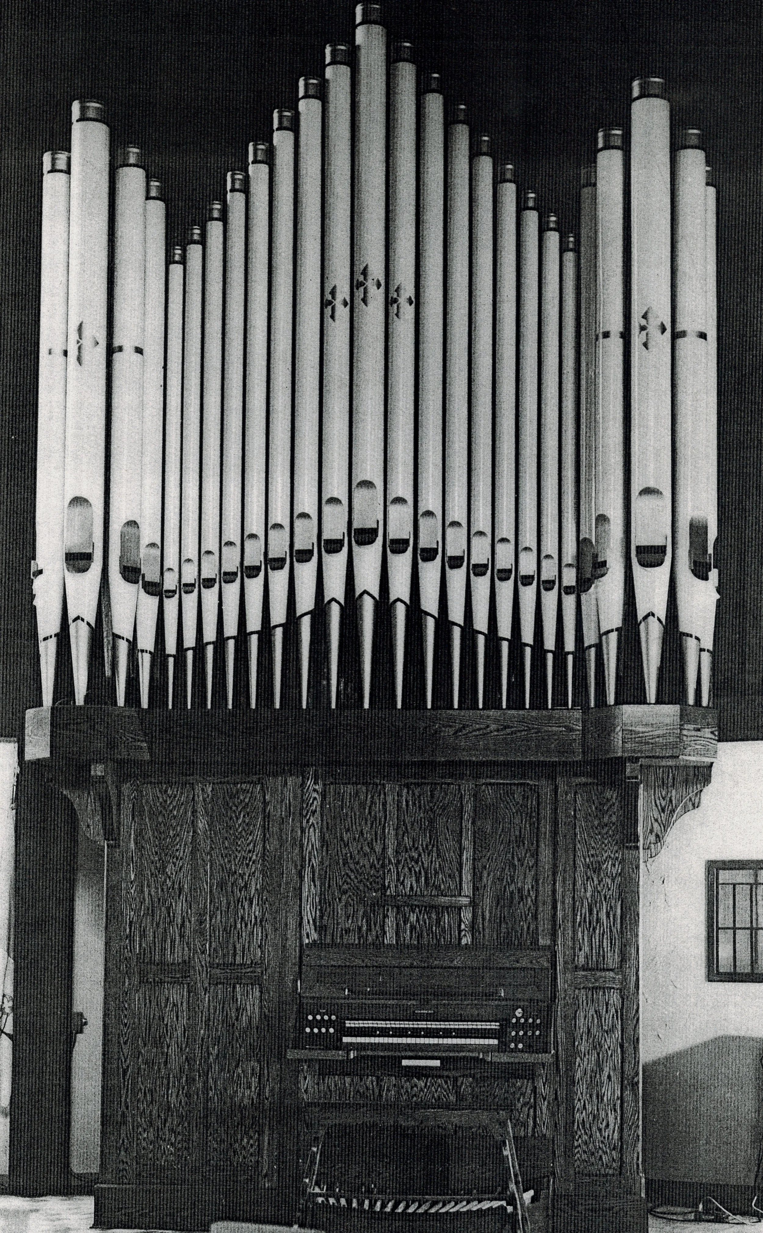 The organ for St. Mary’s Catholic Church was originally built by Geo. Jardine & Son, New York City, for First Congregational Church in Jersey City, New Jersey. Relocated by the Organ Clearing House, the organ arrived in Portland with no casework. A new case was built, substantially smaller in size that the original, to meet space requirements of St. Mary’s. Restoration of the chests and action was done by Clifford Fairley and Jess Wells. The case was built by Jess Wells, and façade painting and stenciling was done by Dean Applegate. Tonal finishing was done by Richard Bond.